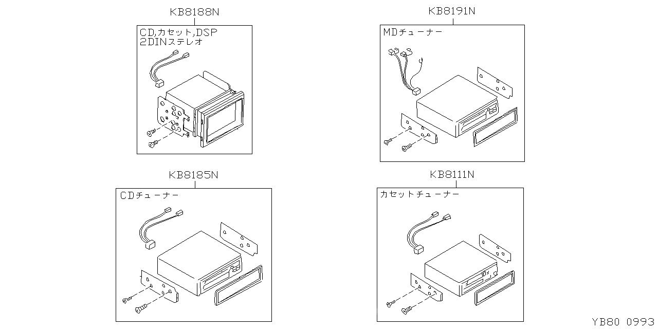 KB8188N B8188-N9990 COMBINATION STEREO 2DIN コンビ ステレオ 2DIN 1999/06 - 2000/06 K.S JPY 98,139 USD 934.66   モノタロウ